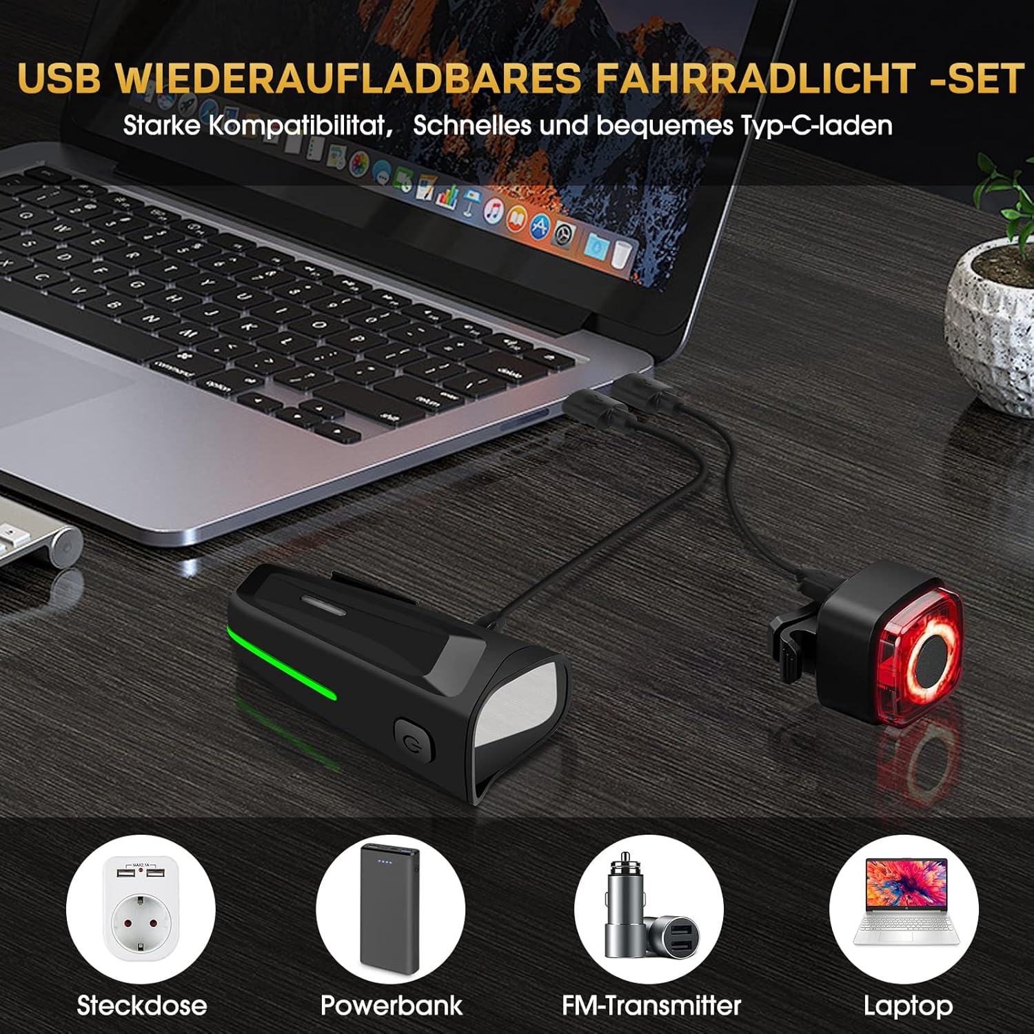 Fahrradbeleuchtung Set mit Front & Rücklicht 100 LUX