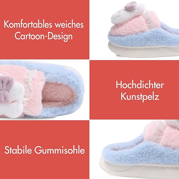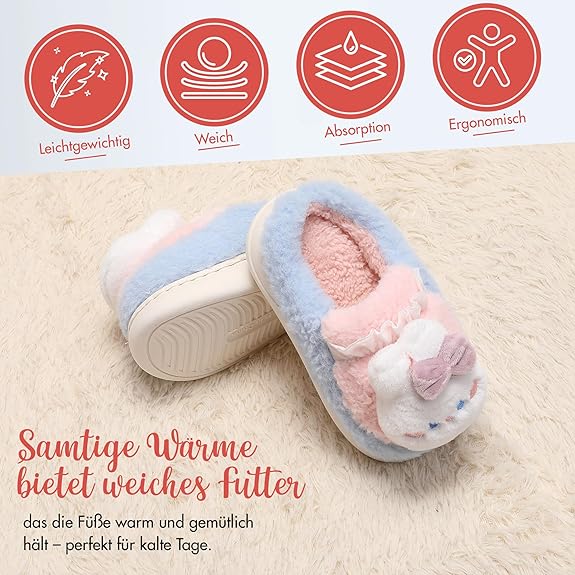 HOCHWERTIGES MATERIAL: Diese leichten Kinder Hausschuhe Mädchen sind aus weicher Baumwolle gefertigt und bieten Kindern gemütlichen Komfort. Der hochwertige Stoff umhüllt ihre Füße eng und sorgt für Wärme und ein beruhigendes Erlebnis. Mit einer plüschigen Baumwollmischung und süßem Cartoon-Design.