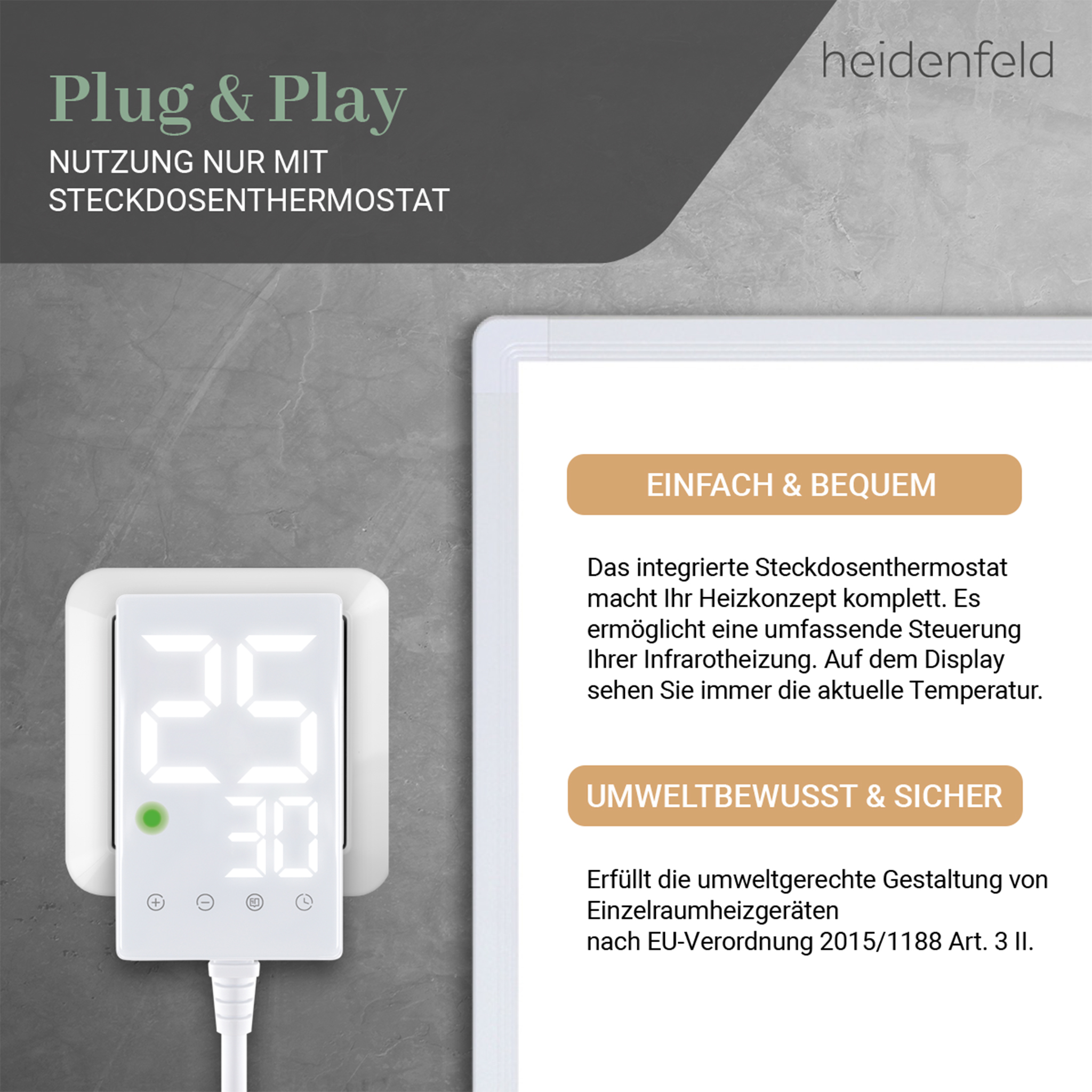 Heidenfeld Infrarotheizung HF-HP100-3 Heizung mit Thermostat 1000Watt