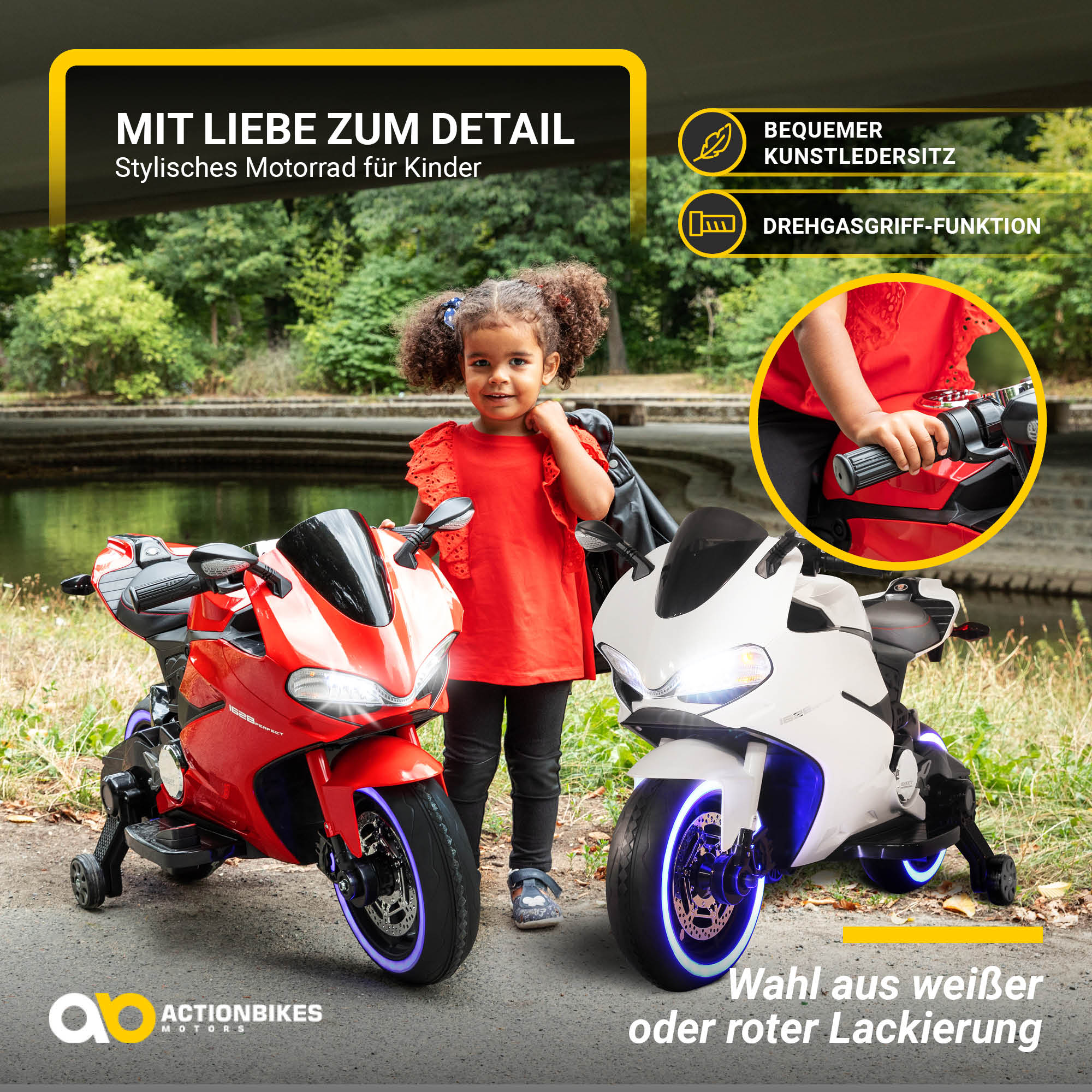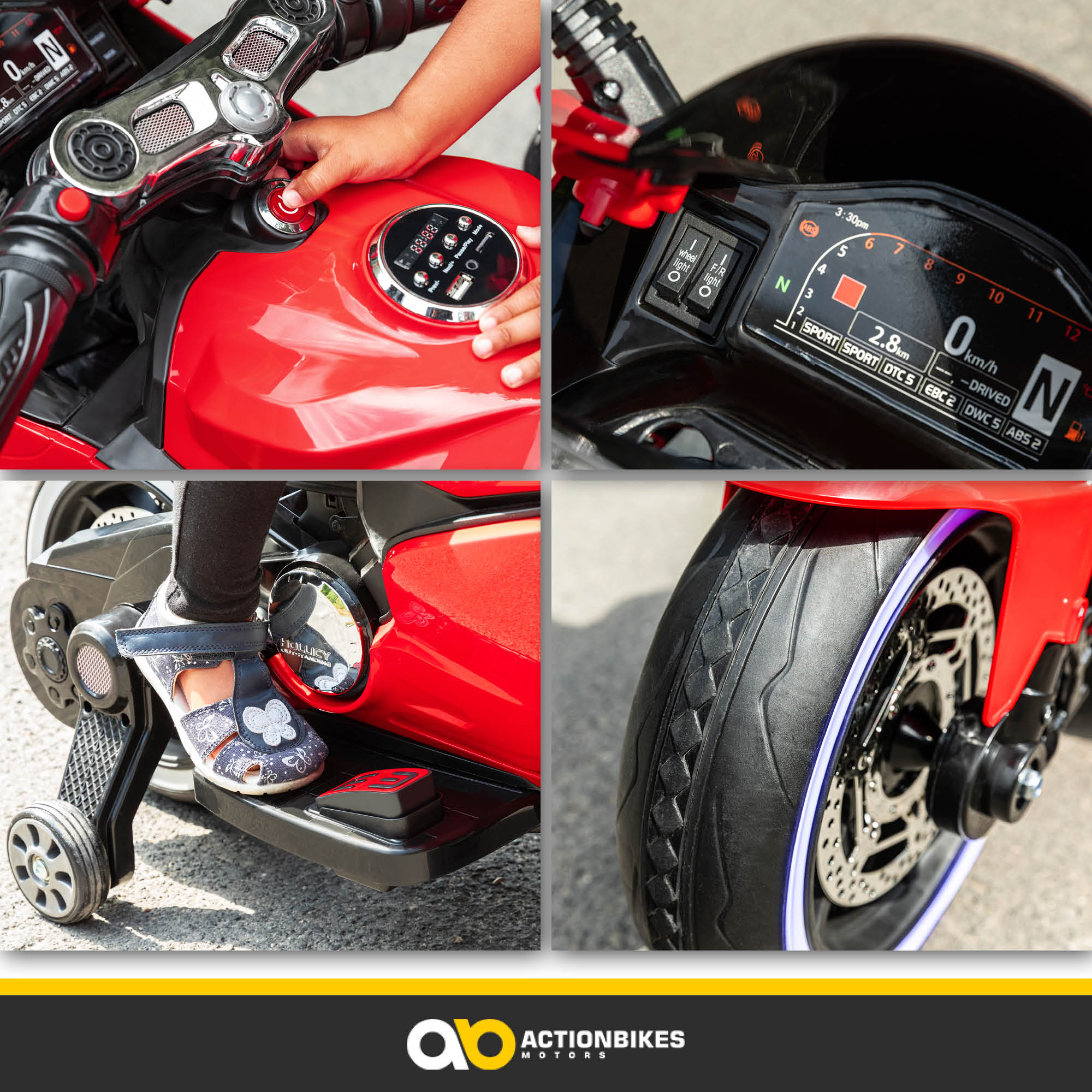 Kindermotorrad 1299SS Elektromotorrad Soft-Start LED-Leuchten Soundmodul Stoßdämpfer 70 Watt