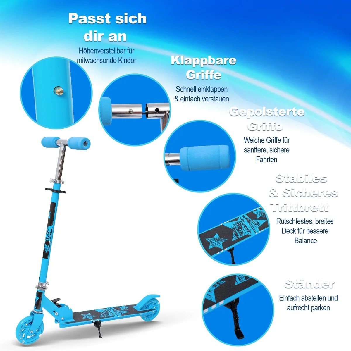 Kinderroller mit LED Rädern Klappbar & 4-fach Verstellbar