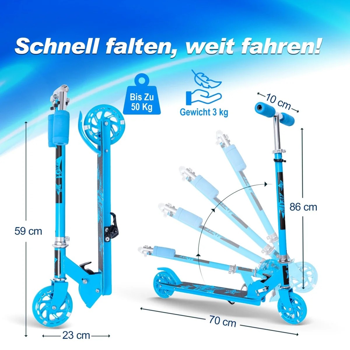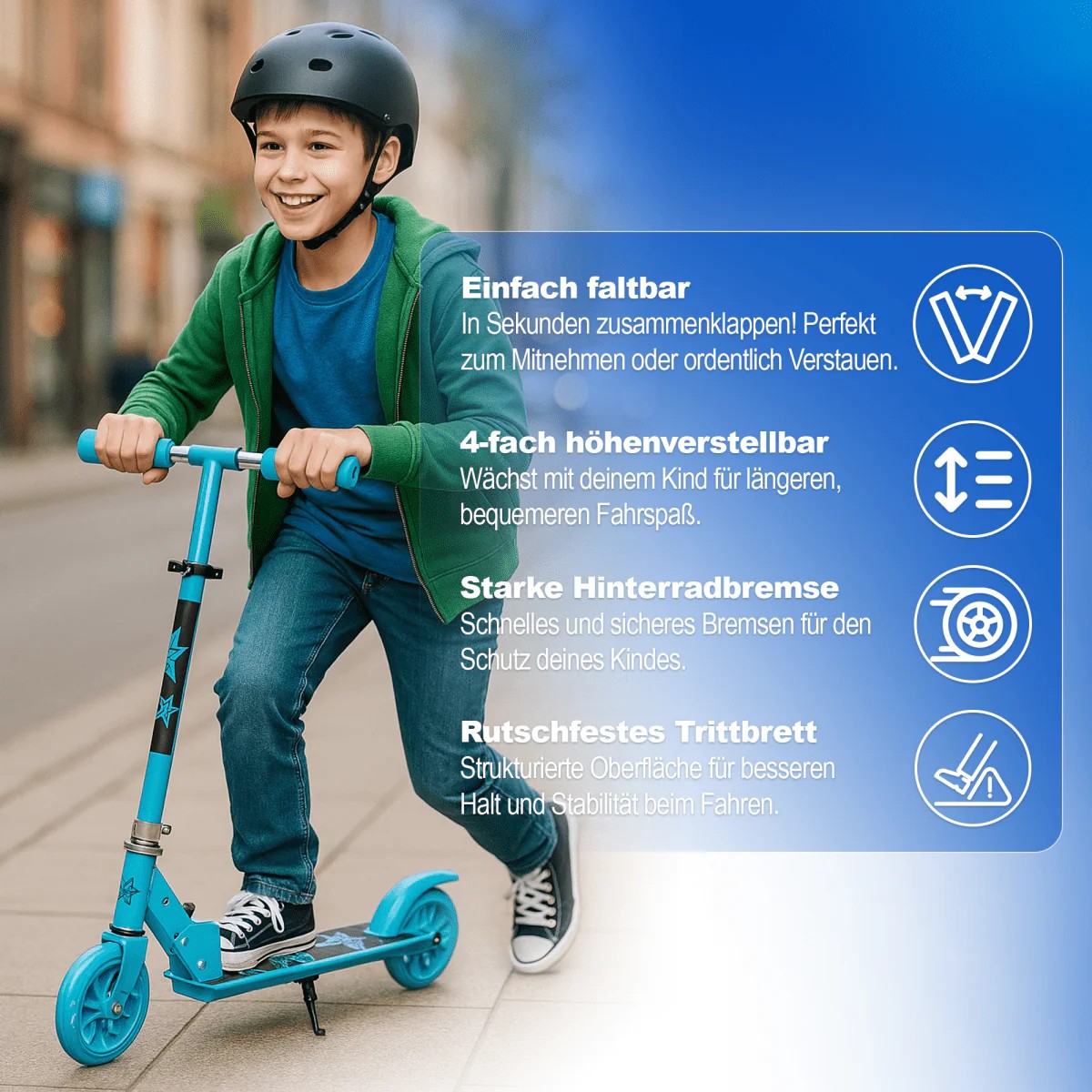 Für Kinder von 6 bis 16 Jahren entwickelt: Dieser faltbare Cityroller/Tretroller ist perfekt für Kinder und Jugendliche von 6 bis 16 Jahren. Mit Fokus auf Sicherheit und Fahrspaß ist er ideal für alle, die Outdoor-Aktivitäten lieben. Sichere und angenehme Fahrten für junge Abenteurer!