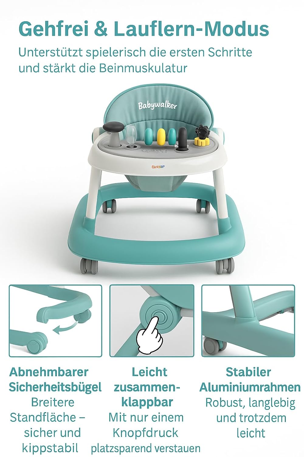 baby Luchs Babywalker Babywalker Lauflernhilfe – stabiles Gehfrei für Babys mit Spielcenter