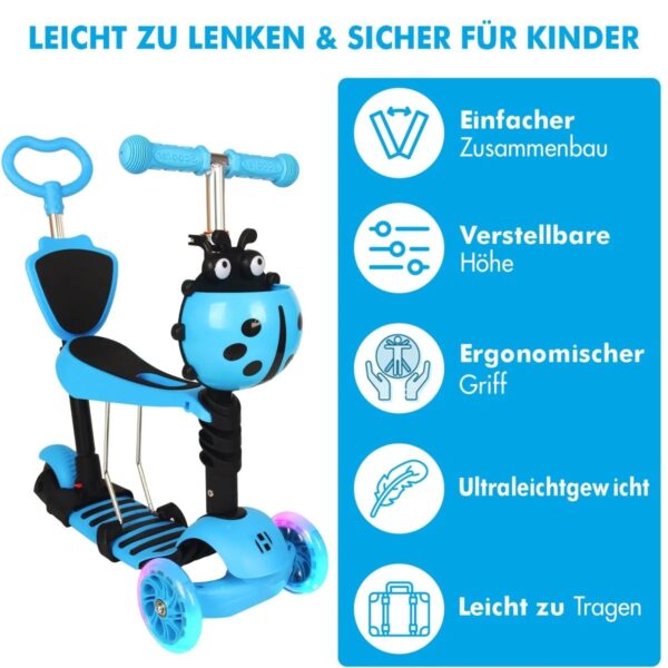 5-in-1-Kinderroller mit Sitz, Erhältlich in mehreren Farben für Jungen und Mädchen, mit dem Marienkäfer Kinderroller...