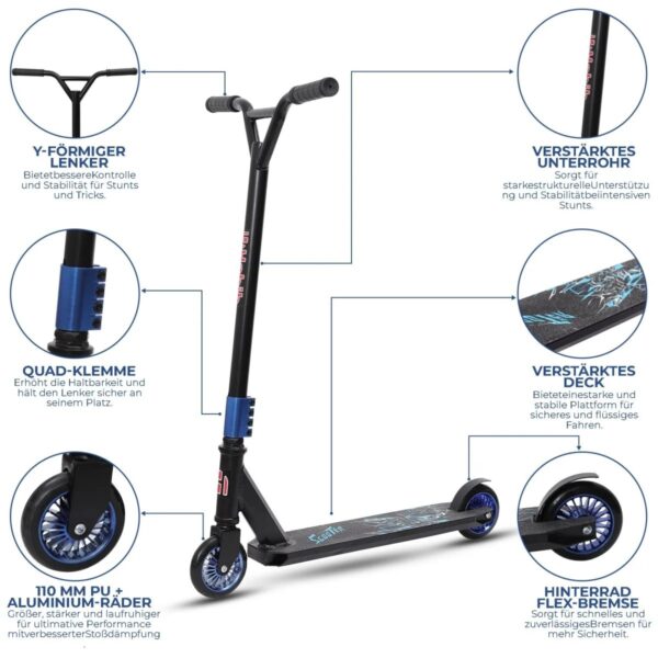 Stunt Scooter für Kinder | 360° Trick Roller 110mm ABEC-9 Räder